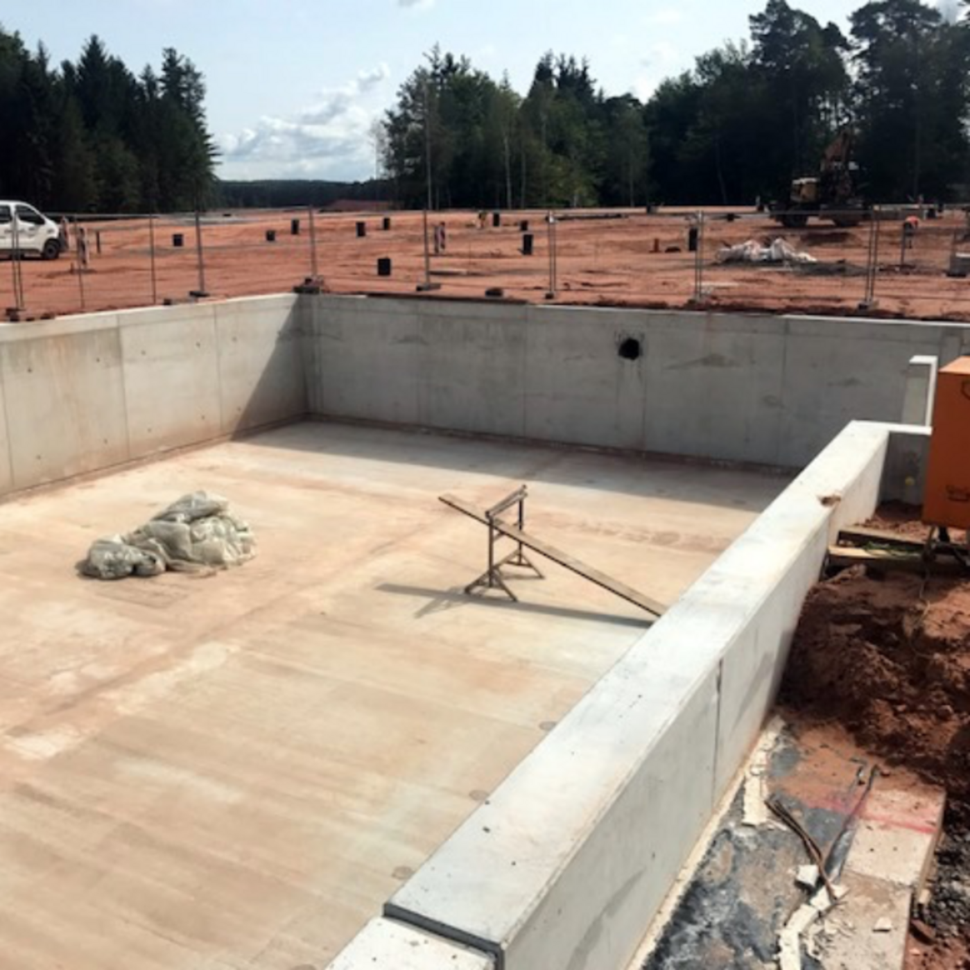 - Bewehrung und Betonage der Bodenplatte in zwei Bauabschnitten