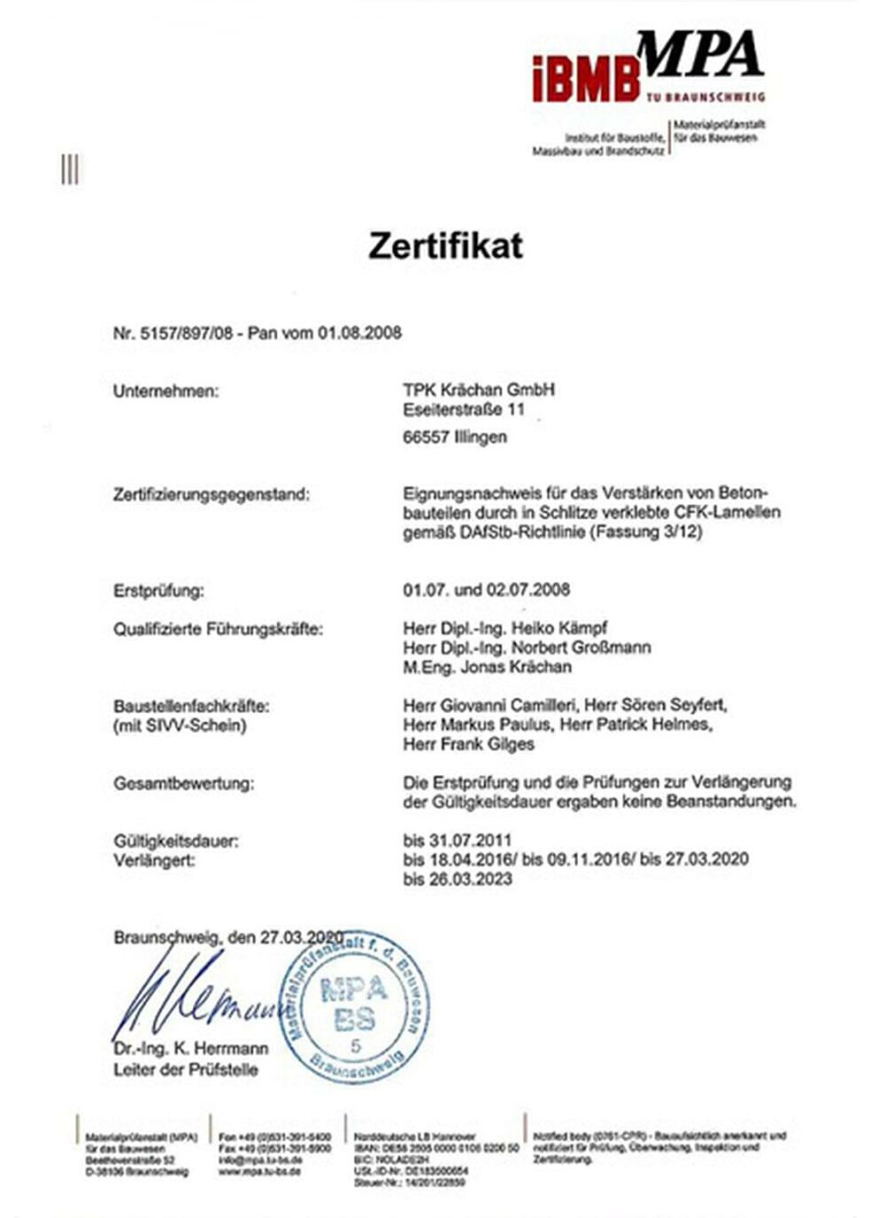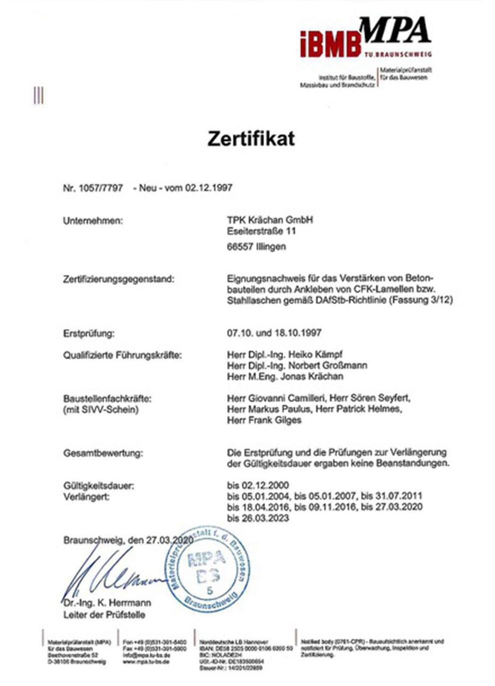 Eignungsnachweis für das Verstärken von Betonbauteilen durch Ankleben von CFK-Lamellen bzw. Stahllaschen gemäß DA/Stb-Richtlinie (Fassung 3/12)