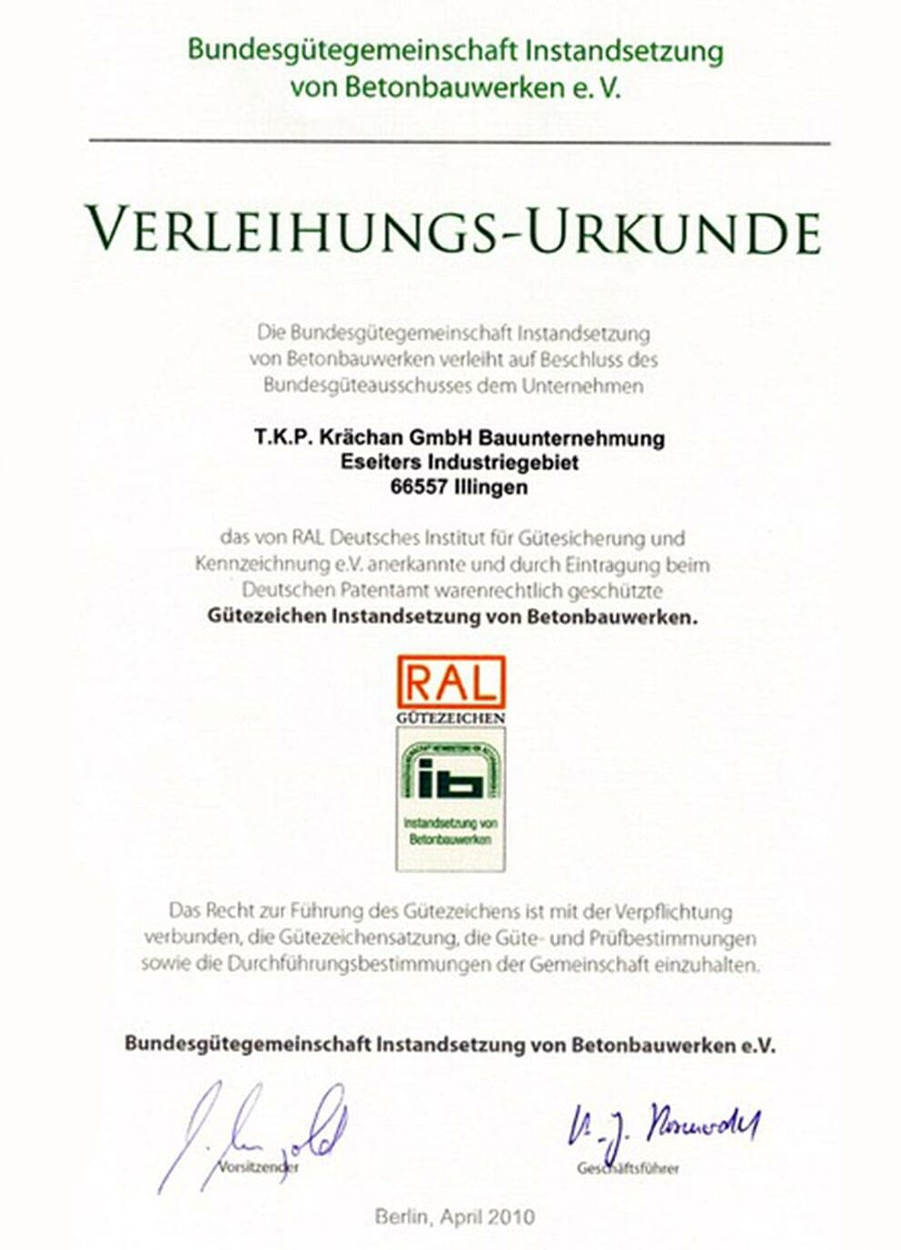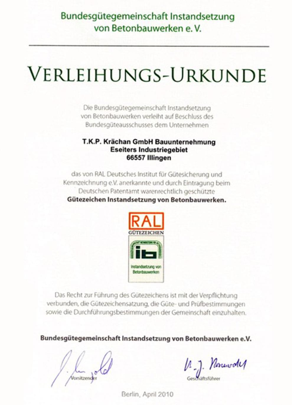 Bundesgütergemeinschaft Instandsetzung von Betonbauwerken e. V. Gütezeichen Instandsetzung von Betonbauwerken